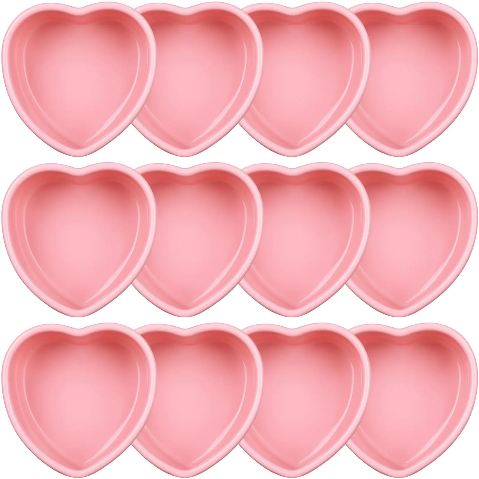 [Multiple Dessert Creations: this package includes 12 heart cake pans each size is about 4 inches offering endless possibilities for creating delectable desserts; Ideal for large gatherings or parties you can efficiently bake multiple sweet treats of cakes muffins or chocolates all at the same time "Quality Material: crafted from quality silicone these heart shaped cake pans ensures maximum durability and flexibility; Theyre non toxic reusable and can withstand high temperatures ensuring a safe and comfortable baking experience" "Easy to Use and Maintain: our 4 inch cake pans are not just easy to use but theyre also conveniently easy to clean due to their non stick surface; You can easily remove your sweet treats from the pan by simply twisting the mold avoiding unnecessary hurts to your baked goods" "Adorable Aesthetic Design: with a charming pink color and heart shape design these small heart cake pans can make your desserts look more appealing; Theyre suitable for making pastries for Valentines Day anniversaries or other romantic occasions adding an extra dose of cuteness and romance" Versatility Beyond Baking: not just for cakes or muffins these heart baking pans can also mold candies chocolates mousse and more; Their cute design also makes them nice party decorations table decorations even delightful presents proving to be an ideal choice for baking enthusiasts]